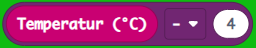 Jetzt würde im LCD die Zahl 10 erscheinen. Daher tauschen wir noch schnell die Zahl zehn gegen den Temperaturmesswert aus. Der Programmblock für die Temperatur befindet sich in der Rubrik „Eingabe“ und heißt „Temperatur (°C).