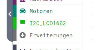 In den Programmblöcken erscheint eine neue Rubrik mit dem Namen „I2C_LCD1602“. Hier finden wir nun alle Funktionen rund um das Display.
