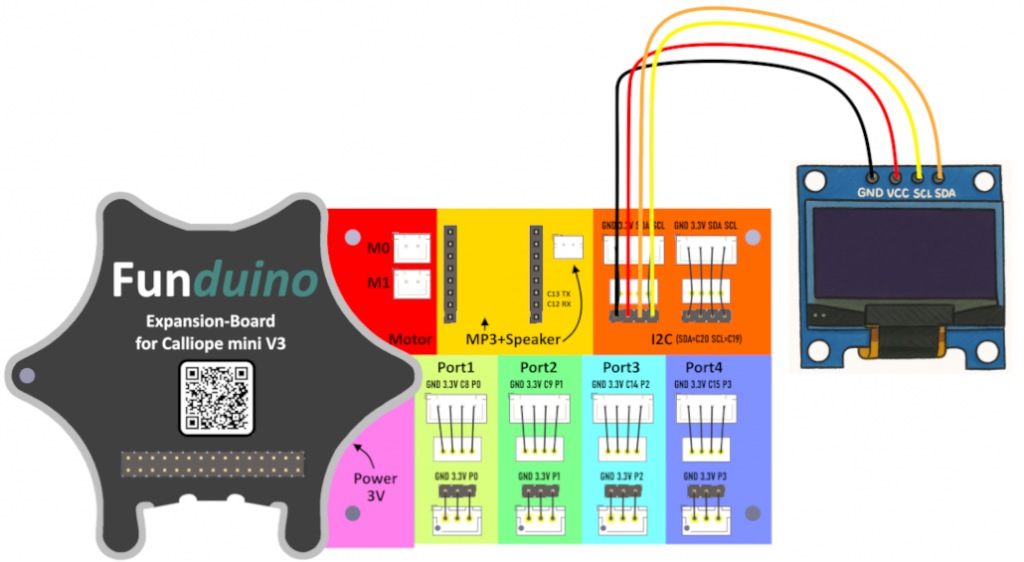 ACHTUNG – Der Calliope-Expander wird je nach Verfügbarkeit entweder mit einem OLED-Display oder mit einem LCD-Display ausgeliefert.