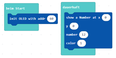 Das ist viel einfacher als du vielleicht denkst. Es gibt in der Programmrubrik „OLED12864_I2C“ einen Programmblock mit dem Namen „show a number“.