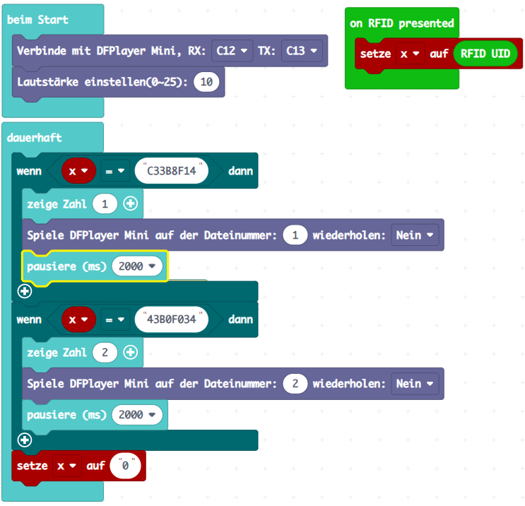 – Wenn die UID xxxxxxx erkannt wird, dann spiele die zweite Datei ab